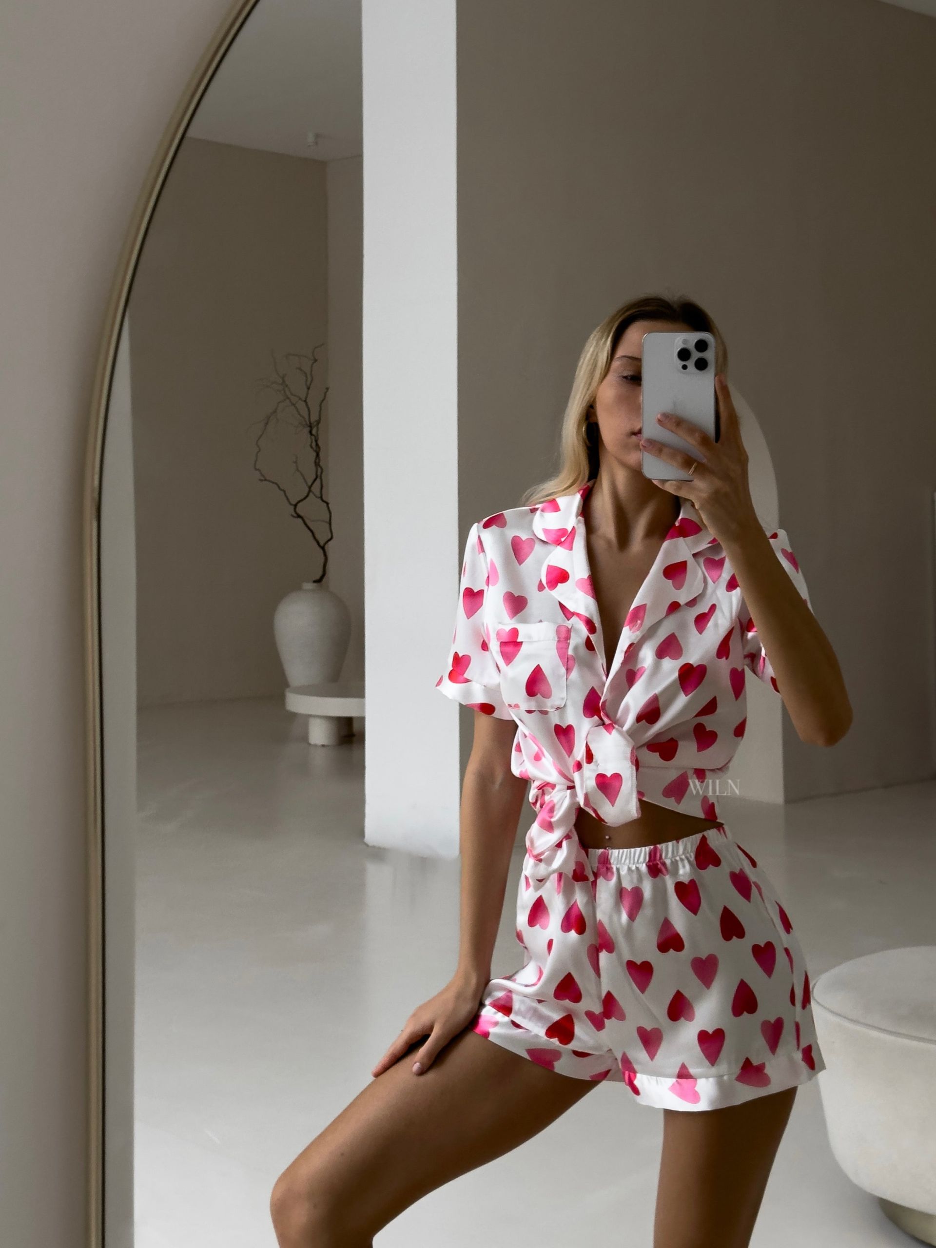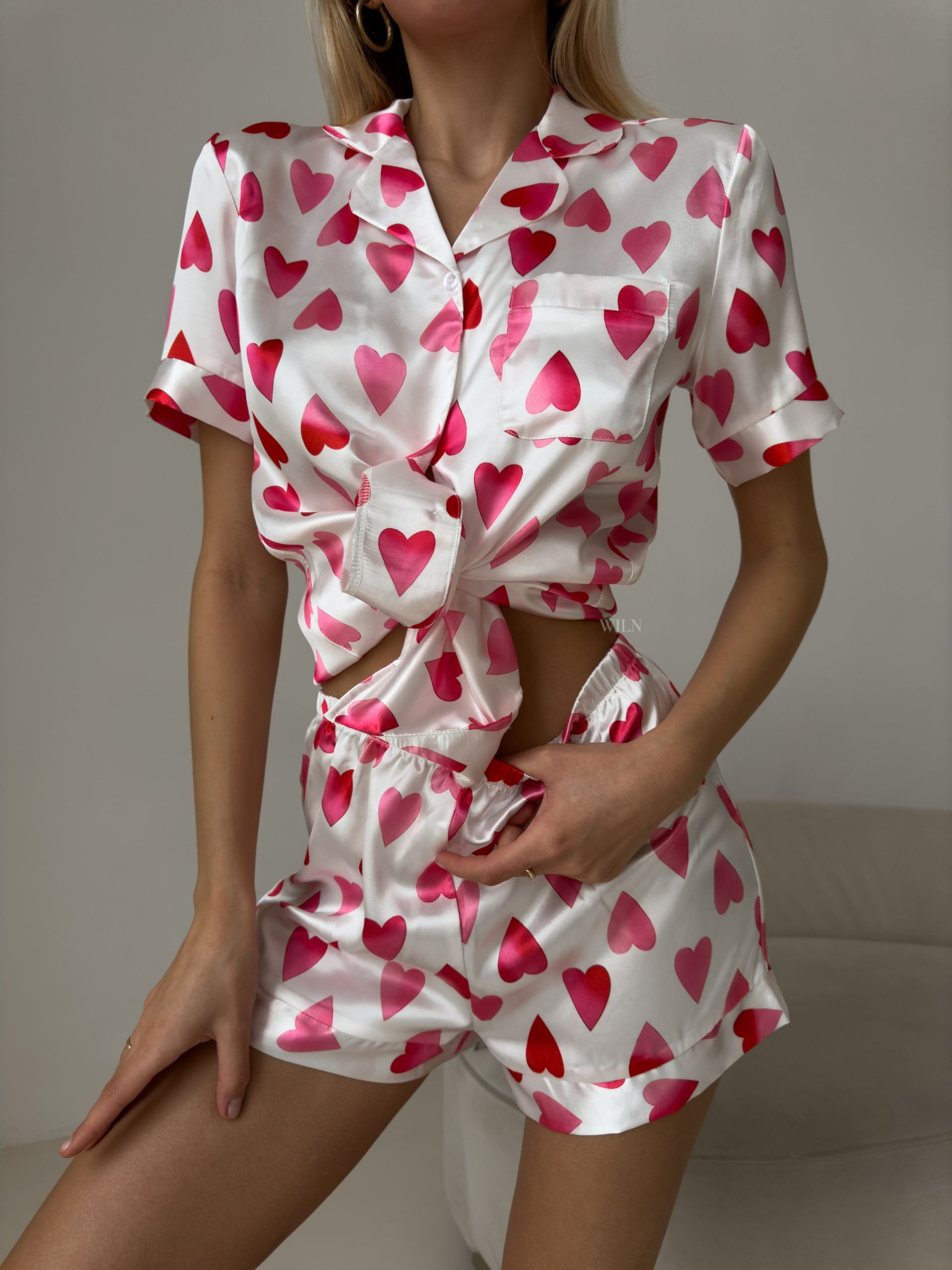 - Soft & Sexy: Made from the fine satin, this set pampers your skin with its gentle touch. The romantic hearts design adds a touch of softness, while the matching top and bottoms ensure a perfect fit.